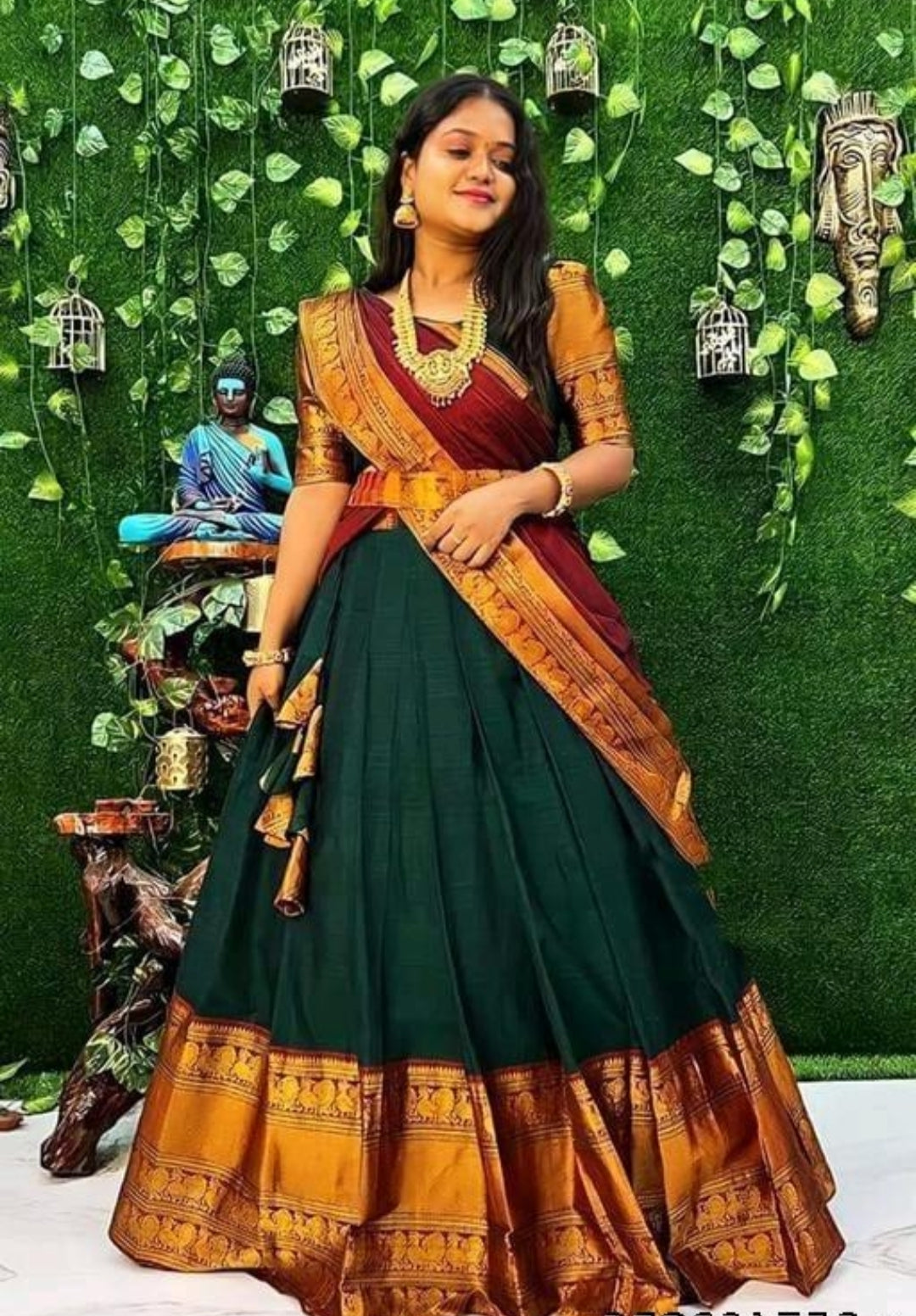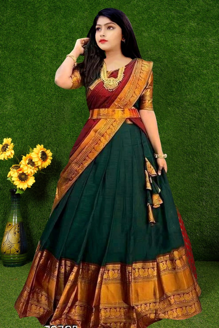 New Designed South Indian Lehenga Choli For women And Girls KUM-KUM green maroon