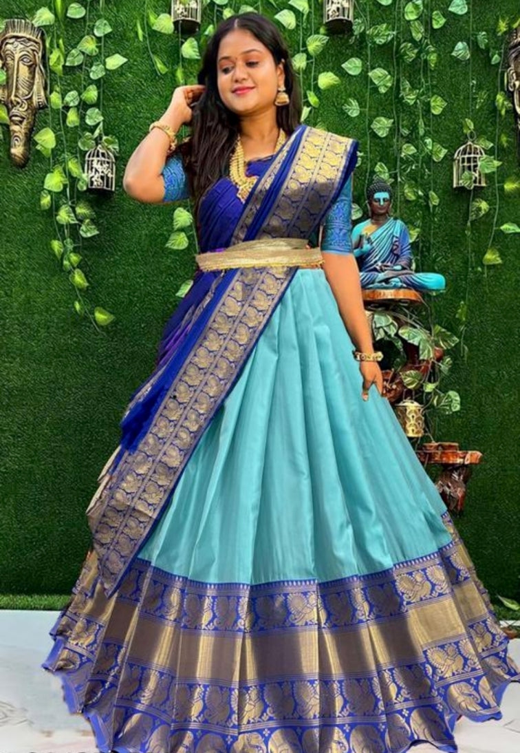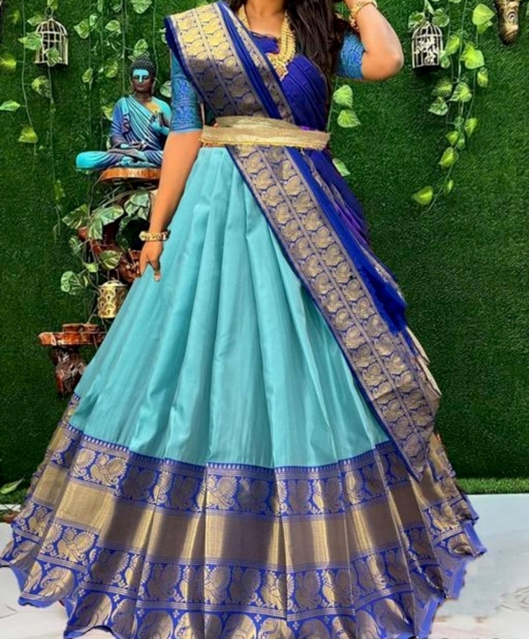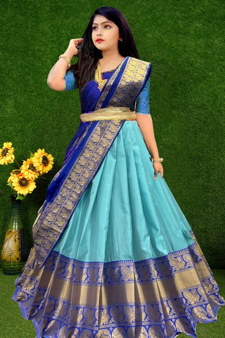 New Designed South Indian Lehenga Choli For women And Girls KUM-KUM Blue Maroon Sky blue