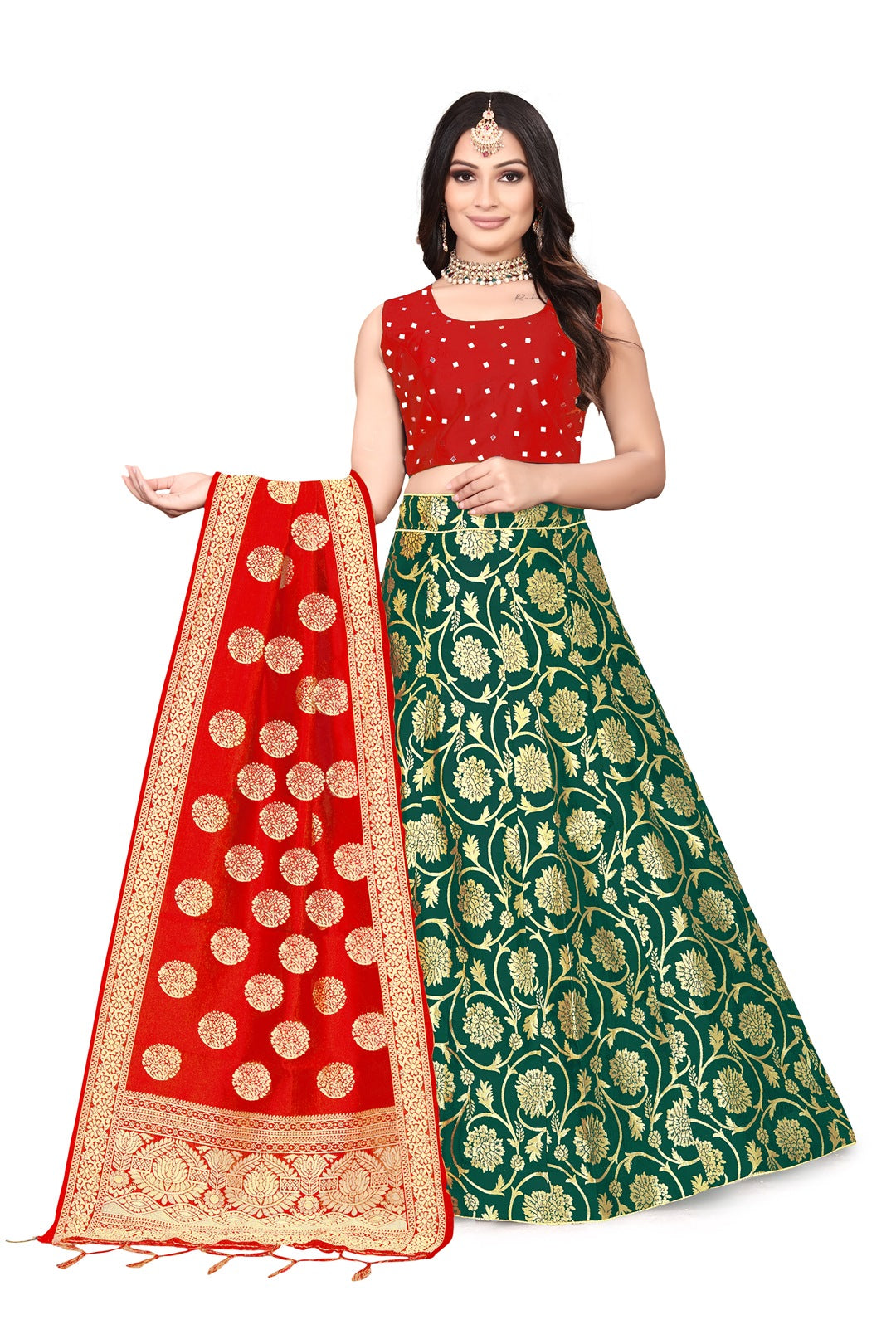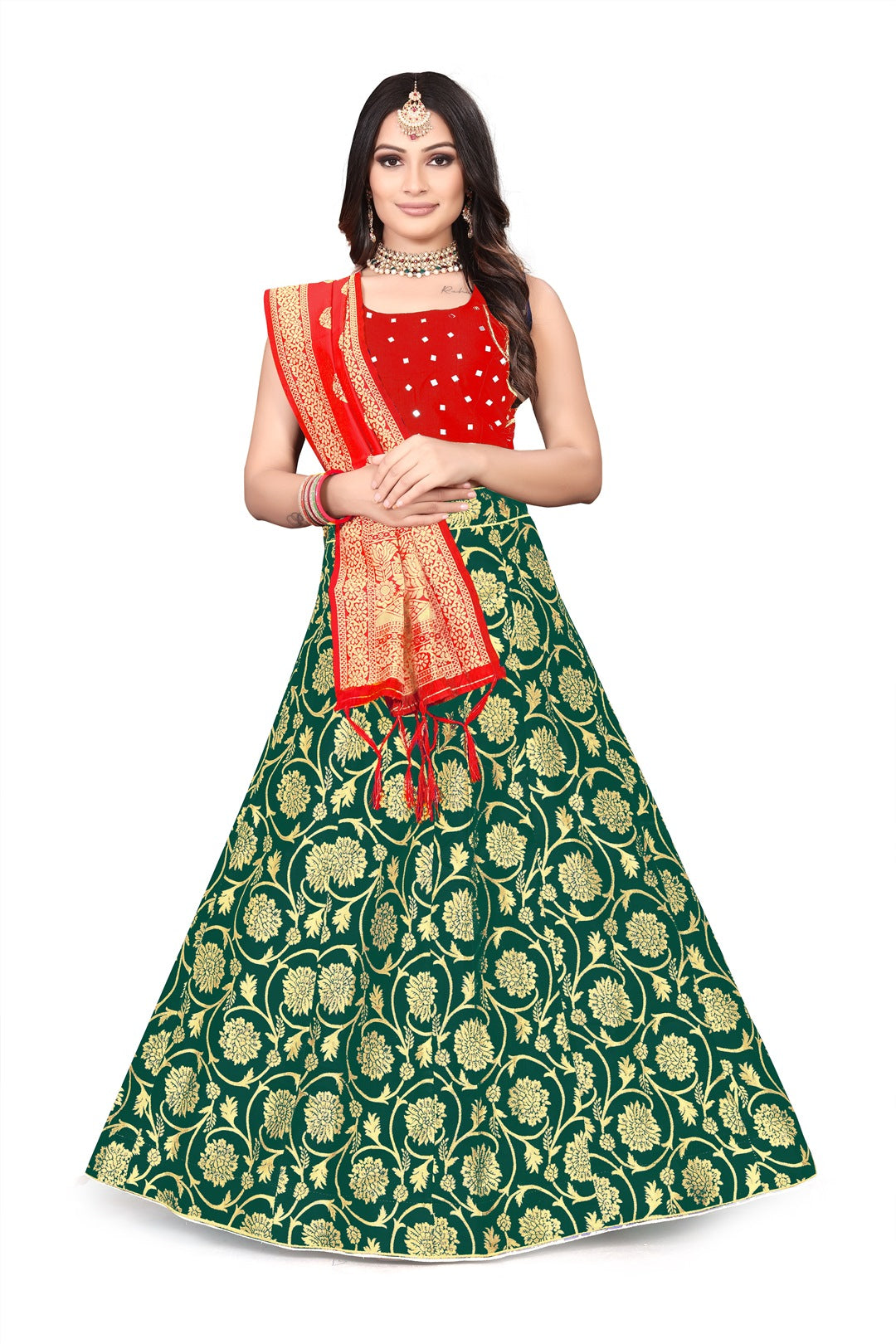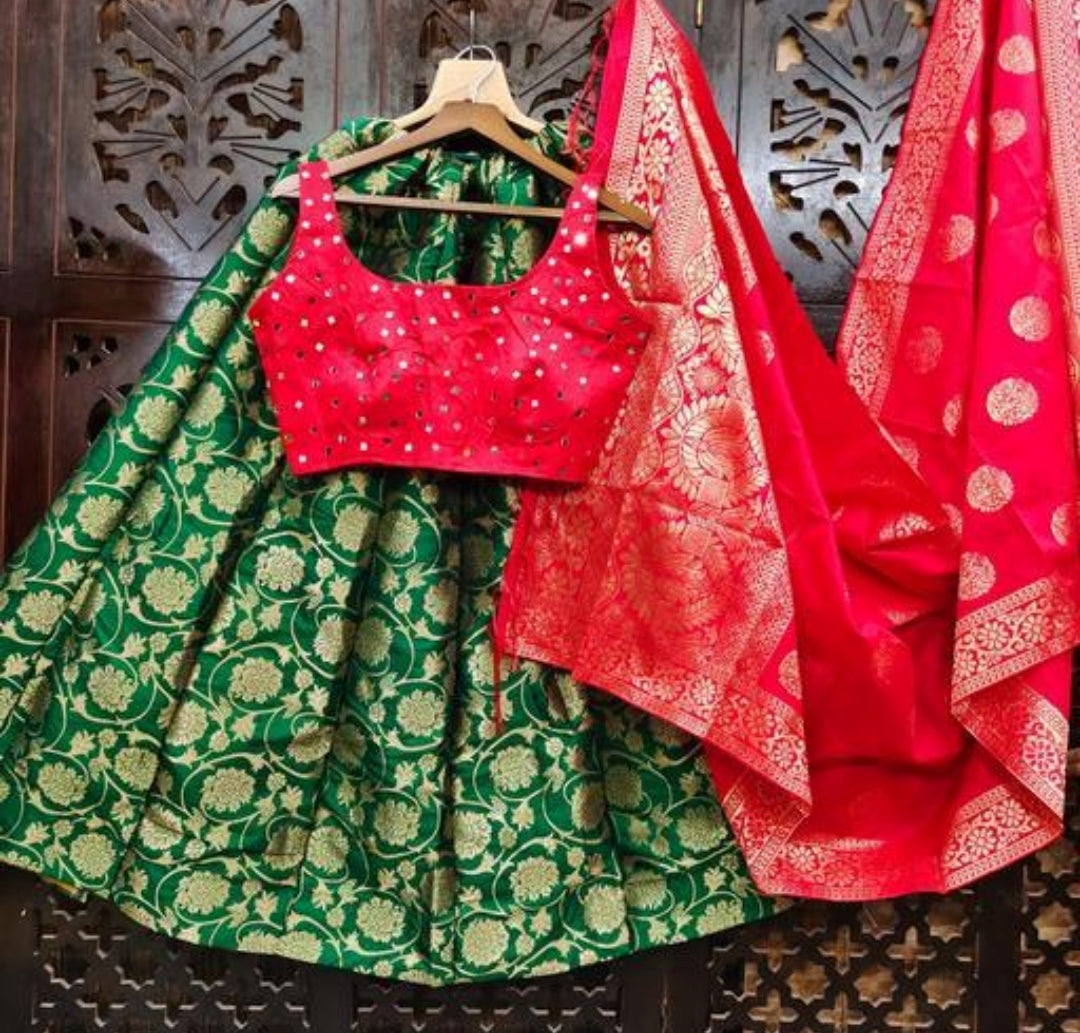 FLAWSOME STYLUS LEHENGA CHOLI COLLECTION. 100 % best quality. Fit Type : Regular. Shop from a wide range of beautifully crafted Lehenga Choli from Tirupati Enterprise. Pair this piece with heels or flats and matching jewelry for a stunning look.*Fabric*. Lehenga* -heavy Banarasi Jacquard Silk Lehenga with inner , cancan & canvas_ semi stitch Size - upto 42 , Length - 42 Kali stitched with full flair. Blouse* - banarasi fantom silk Ready Padded Blouse(Real Mirror Hand Work). Dupatta* - heavy Banarasi Jacquard Silk.*Size*:-Lehenga- Waist and hight Size - Upto 42 Inches. *Blouse -Free size 1 pice. * Dupatta - 24 Inches .*Length*:- *Dupatta- Approx. 2.50 Meter (*With Tussle*). *Type*:- *Lehenga : Semi-Stitched. *Blouse : Full Stitched Blouse Standard size:38-40 inchs size ready and 4 inches margin inside so can extend till 42 inchs Padded Blouse. *item in order*:- It has 1 pieces of Lehenga, 1 Piece of Blouse & 1 Piece of Dupatta. Wash care : machine wash warm wash with like colours only non-chlorine bleach when needed tumble dry low warm iron if needed.Weight :- 440 grm. These all r original pics_
