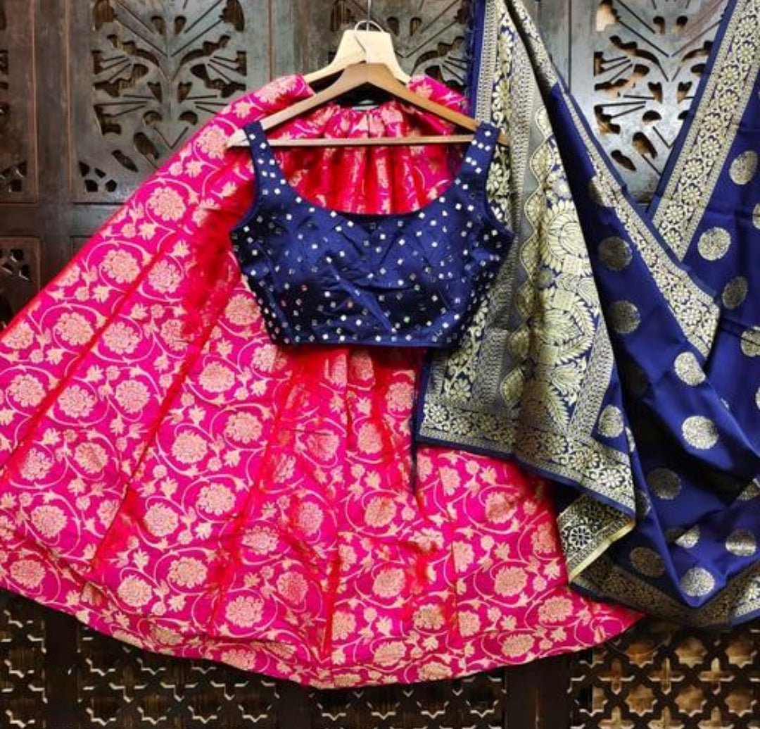 FLAWSOME STYLUS LEHENGA CHOLI COLLECTION. 100 % best quality. Fit Type : Regular. Shop from a wide range of beautifully crafted Lehenga Choli from Tirupati Enterprise. Pair this piece with heels or flats and matching jewelry for a stunning look.*Fabric*. Lehenga* -heavy Banarasi Jacquard Silk Lehenga with inner , cancan & canvas_ semi stitch Size - upto 42 , Length - 42 Kali stitched with full flair. Blouse* - banarasi fantom silk Ready Padded Blouse(Real Mirror Hand Work). Dupatta* - heavy Banarasi Jacquard Silk.*Size*:-Lehenga- Waist and hight Size - Upto 42 Inches. *Blouse -Free size 1 pice. * Dupatta - 24 Inches .*Length*:- *Dupatta- Approx. 2.50 Meter (*With Tussle*). *Type*:- *Lehenga : Semi-Stitched. *Blouse : Full Stitched Blouse Standard size:38-40 inchs size ready and 4 inches margin inside so can extend till 42 inchs Padded Blouse. *item in order*:- It has 1 pieces of Lehenga, 1 Piece of Blouse & 1 Piece of Dupatta. Wash care : machine wash warm wash with like colours only non-chlorine bleach when needed tumble dry low warm iron if needed.Weight :- 440 grm. These all r original pics_
