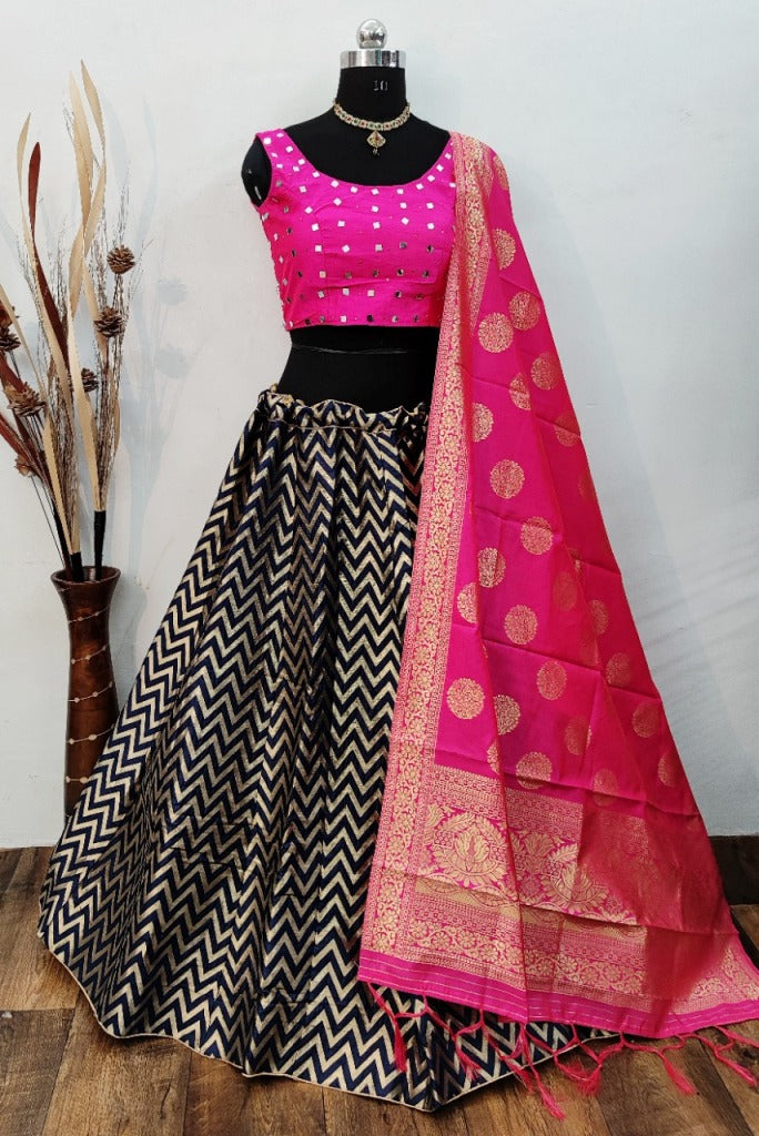 New Designed Banarasi Lehenga Choli For women And Girls. 100 % best quality. Fit Type : Regular. Shop from a wide range of beautifully crafted Lehenga Choli from Shavidr Enterprise On meesho. Pair this piece with heels or flats and matching jewelry for a stunning look. You Get Best Quality Fabric from Us. *Bottomwear *(Lehangha):- heavy Banarasi Jacquard Silk Lehenga with Inner And Botam Cancan_ semi-stitched With Full Flair. *Topwear(Choli/Blouse):-Heavy Brocade fantom silk Ready Padded Blouse(Real Mirror Hand Work). *Dupatta(Chunni):-Chanderi Silk With Smuth and Soft Filing. Print or Pattern Type:Solid. Waid : 24"inch. Length:2.25 Miter. Product Weight :- 490 grm. These all r original pics. Care Instruction:hand wash only banarasi lehenga banarasi silk lehenga choli baby girl lehenga banarasi kids kundan lehenga silk lehenga for girl baby girl banarasi lehenga choli dupatta womens lehenga choli dupatta girl wedding readymade lehenga for girls banarasi lehenga chote bachchon canvas knee chokri chaniya choli lehenga choli for girls wedding party yellow wedding party wear lehenga for girls kid new design lehenga heavy wedding lehenga choli for girls heavy party wear lehenga for wedding cotton lehenga with dupatta modern lehenga with dupatta chanderi lehenga for kids girls banarasi silk lehenga for women multicolor banarasi lehenga banarasi silk lehenga for women wedding soft
