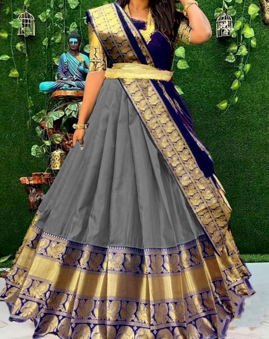 New Designed South Indian Lehenga Choli For women And Girls KUM-KUM Blue Maroon grey blue